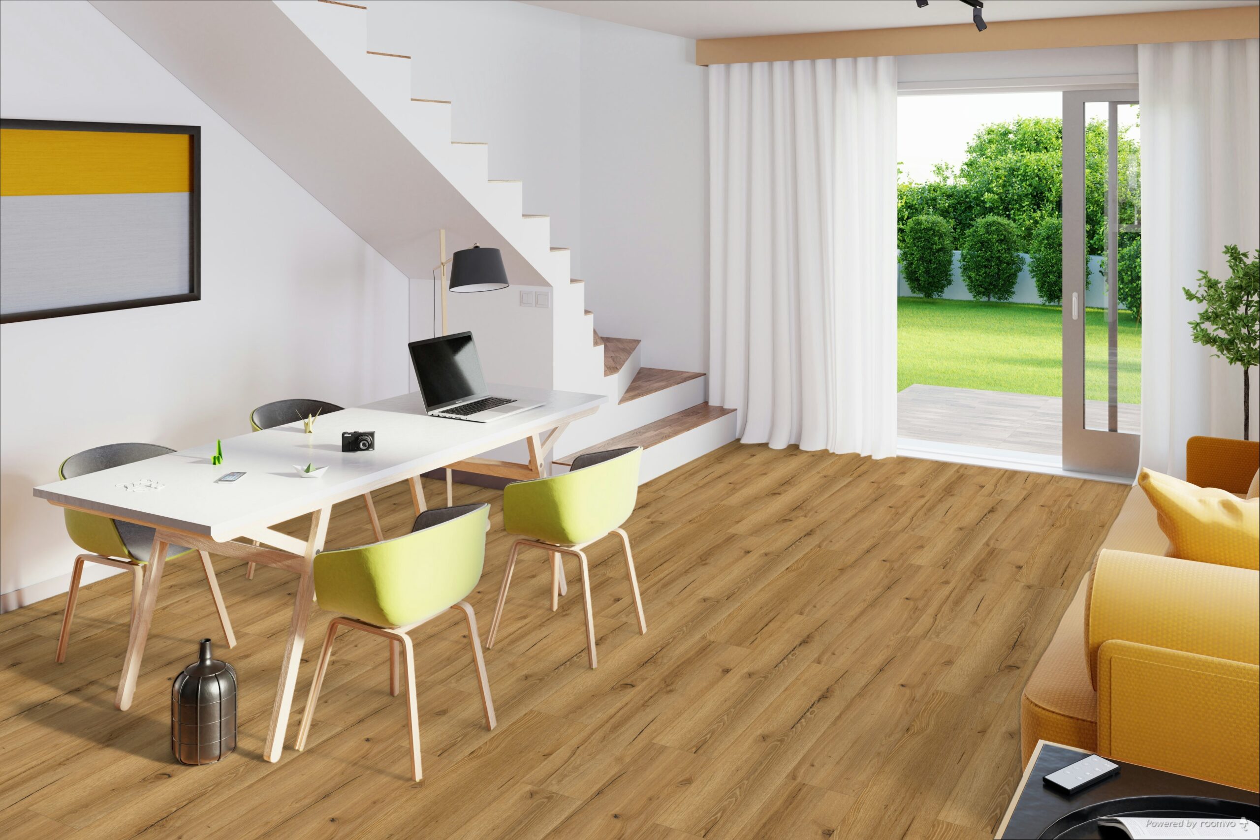 Mit einer Garantie von 50 Jahren bietet das Rigid-Vinyl langfristige Zuverlässigkeit. Es ist formstabil, auch bei Temperaturschwankungen und ideal für Räume mit bodentiefen Fenstern sowie Fußbodenheizungen bis zu 27°C. Dank seiner phthalatfreien und emissionsarmen Beschaffenheit ist der Boden besonders umweltfreundlich und gesundheitsverträglich.